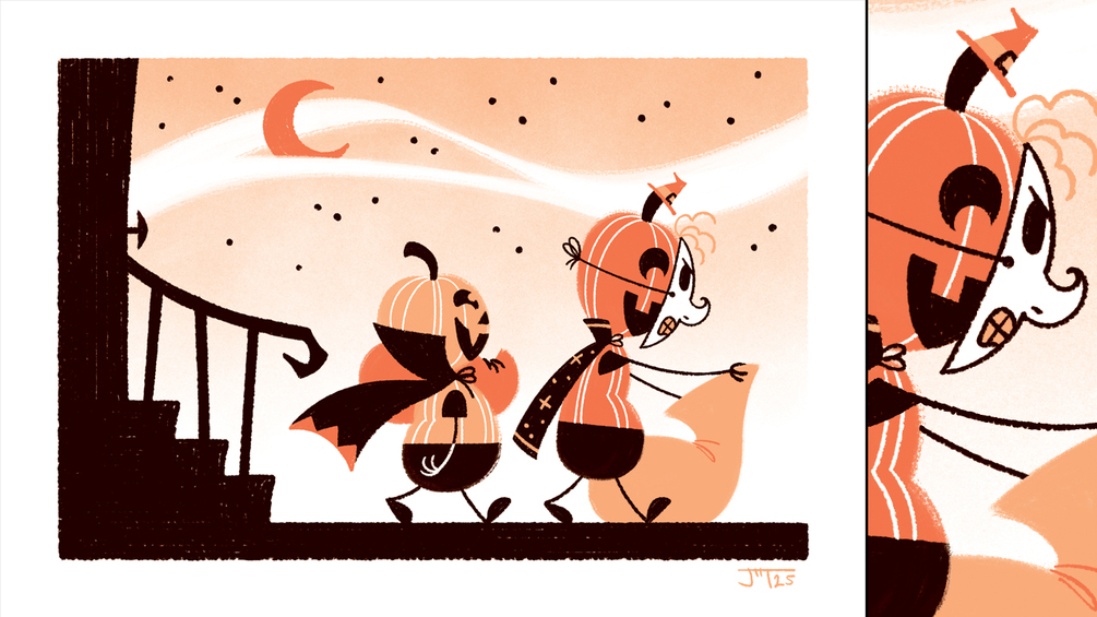 Inspired by old Ray Bradbury book covers, The Autumn People is a tribute to classic Halloween imagery. Join my little pumpkin folk enjoying their spooky lives in the October country!