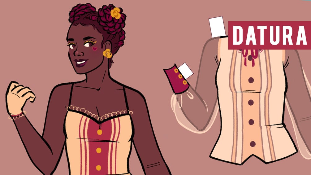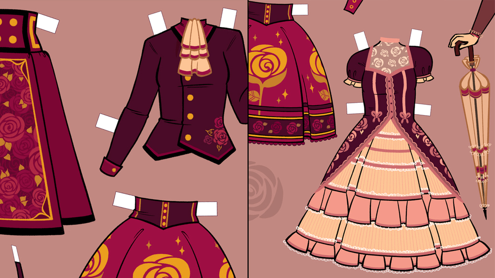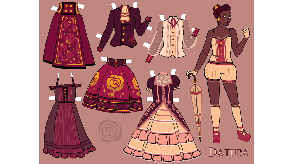 Anyways. Unlike Davana, I stuck closer to her original base design. My biggest changes were her hair- the buns are SO much cuter than the scribbly Jheri curls- and an improved skintone. Her clothes, however, I changed a LOT. Everything got overhauled to look a bit fancier, a little frillier, and with WAY more roses than the original. I think she's now my favorite doll I've ever made!