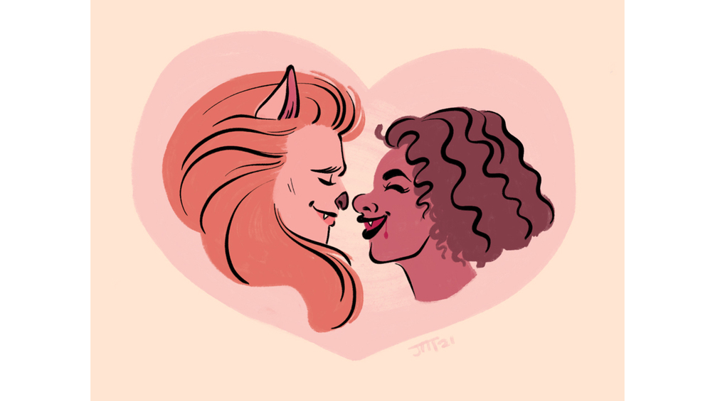 Monster Girls in Love is 2021 print series where I repurposed illustrations I made for a failed fabric design. Why let good art go to waste?