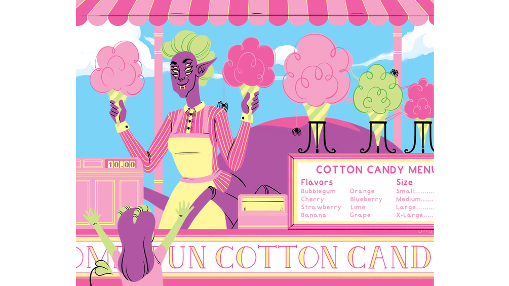 From 2021 to 2022, I had the pleasure to work on a personal project: A series of prints combining monster girls and vintage-style sweet shops. This was largely an excuse to design a bunch of monster-themed sweets, but I decided to add an extra challenge: each piece had to have less than ten colors, and I had to draw them in a completely flat style. Getting the layouts & color placements correct was tough, but the end results were worth the effort!