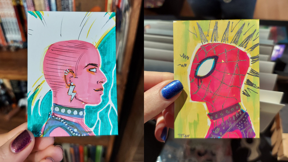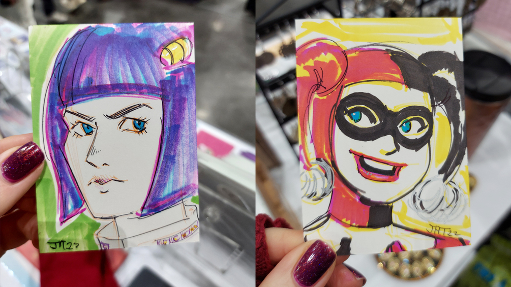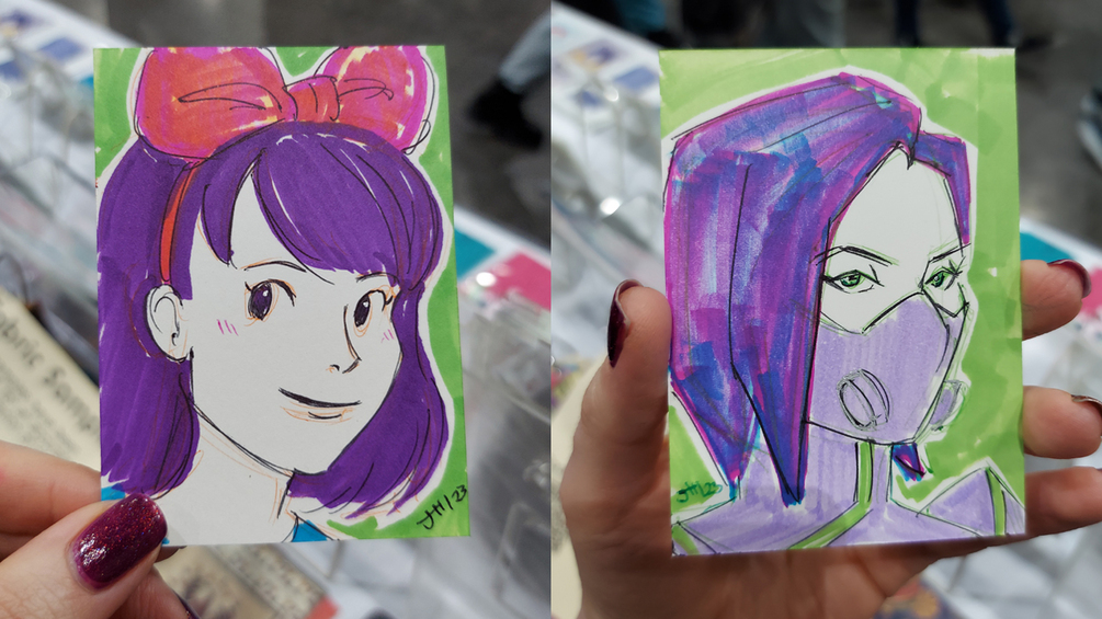 A permanent staple of my booth at art shows and conventions: custom sketch cards! You can request nearly anything- yourself, your partner, your friend,your favorite character, your pet, your oc, WHATEVER- and you will get a colorful custom sketch!