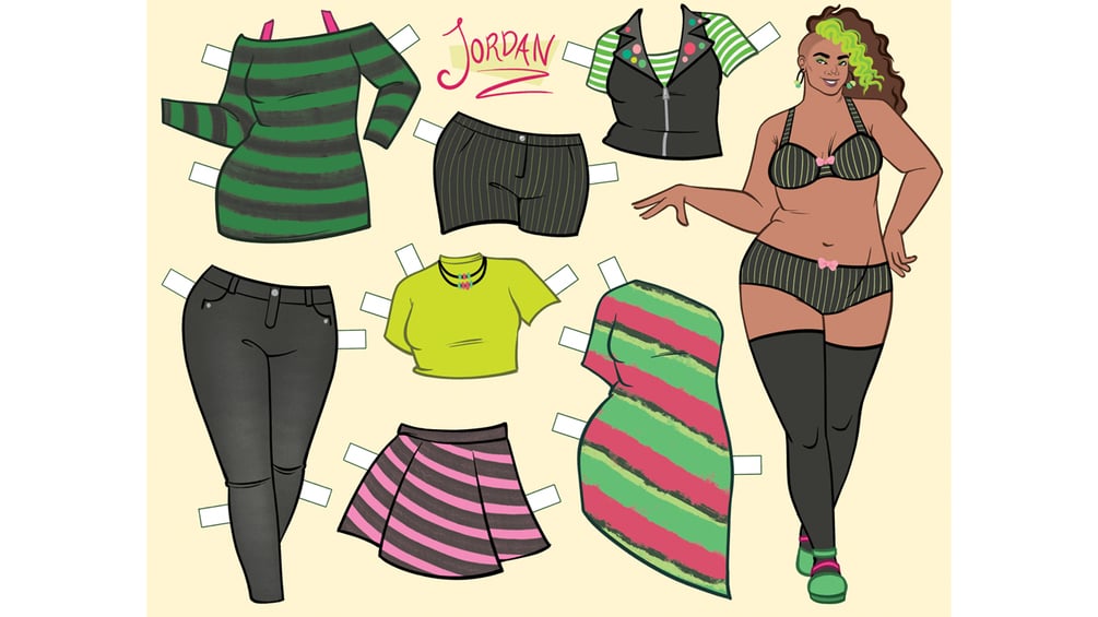 Meet my stripe-loving girl, Jordan! She was made for Paperdoll Review Magazine's Stripes issue. I based her heavily on the clothes my friends and I would wear in highschool during the 00s- especially the looks we would wear to parties.