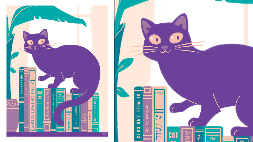 I wanted to do something fun and simple for my first steam after being gone for almost a month, so I combined two of my favorite things: books and cats! I loved the resulting sketches so much that I turned them into full prints!