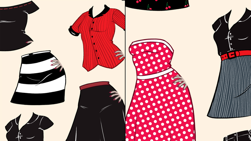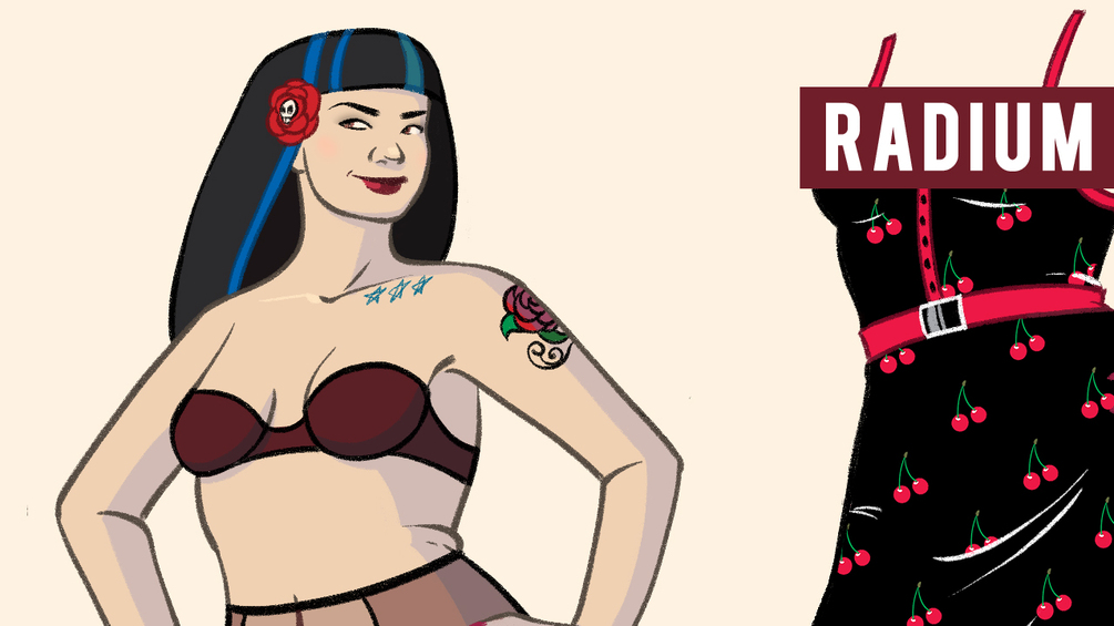 A 2018 redraw of my third ever paper doll, Radium! She is just a straight-up Rockabilly girl. No twists, no specific time period of a specific fashion movement- just pure Rockbilly fun.