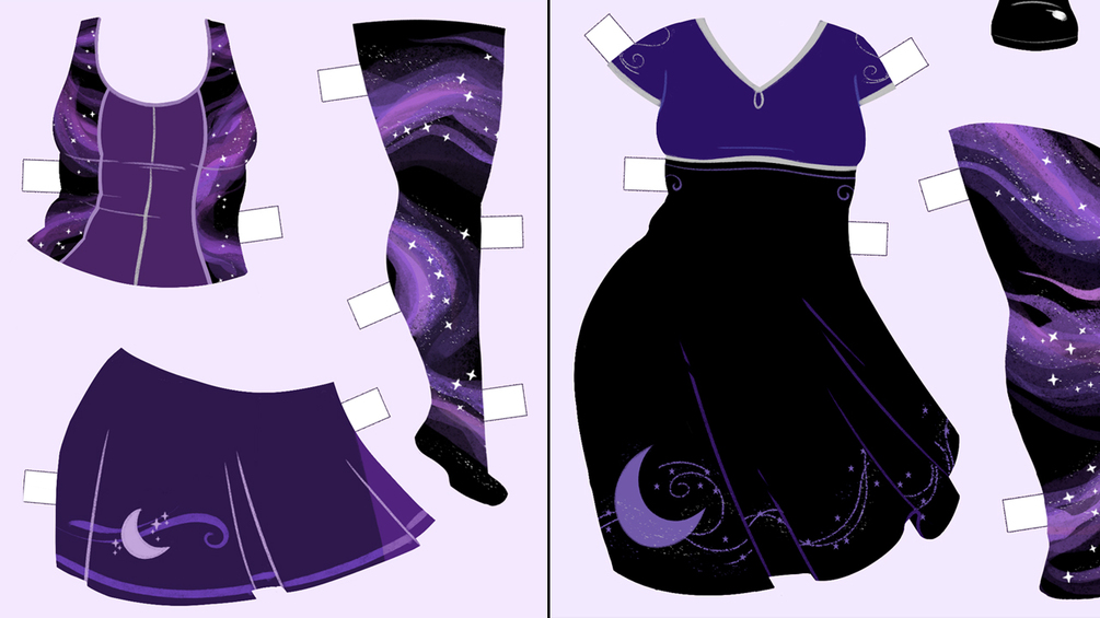 Part of my 2016 Halloween paper doll collection. Sanaa was created out of my life-long love of the night. I'm not going to lie, I still think Sanaa has the best outfit selection out of all my dolls. And people seem to agree- she's one of my most popular dolls.